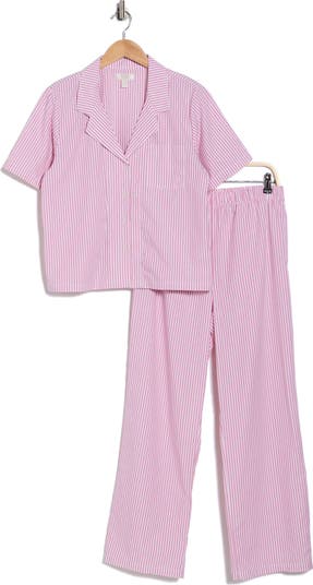 Slim stripes bring a classic detail to matching pajamas that pair a buttoned shirt with full-length pants and feature pure-cotton fabrication for lasting comfort.