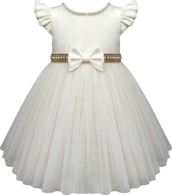 Perfect for the holiday season or any special occasion, this darling dress designed for baby features a full skirt, polished embellishments and a charming bow.