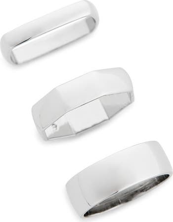 Enhance your look with this polished ring trio featuring different shapes that can be stacked or worn solo for a more subtle look.