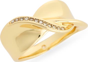 Pavé CZ illuminate the ribbon-like silhouette of this polished statement-making ring.