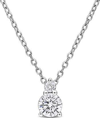 A delicate chain crafted from sterling silver is centered by a lab-grown diamond pendant that brings elegant shine to any neckline.