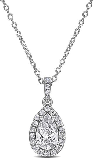 Sterling Silver Pear Cut Lab Grown Diamond Halo Pendant Necklace