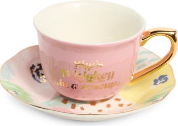 Raise your cup and sip tea (or whiskey) in style with this adorable ceramic teacup and matching saucer.