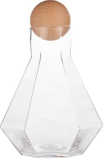 Elevate your bar cart with this glass decanter featuring a geometric silhouette and a beech wood ball topper.