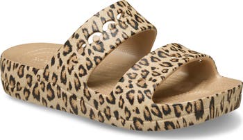 A platform sole and bold animal print add a dash of contemporary height to this springy slide sandal crafted from buoyant Croslite foam with a textured footbed and sole.
