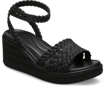 The signature lightweight material keeps you light on your feet in these platform-wedge sandal featuring a woven, braided texture and an adjustable ankle strap for a secure fit.