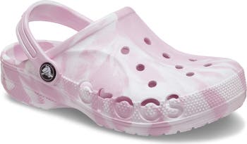 A marble pattern creates a cool effect on the classic Baya clog that features a flip-up heel strap and contoured cushioned insole.