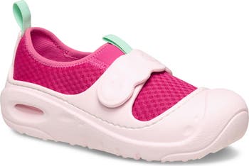 Your kiddo will be ready for all water-related activities in this fun water shoe outfitted with strategic drainage ports, a mesh liner that protects from debris and a molded Croslite® frame. A grippy sole keeps them on their feet while a wavy strap offers an adjustable fit.