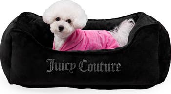 Luxuriously soft and glamorous, this cushioned velour bed, adorned with the brand's signature crown emblem and sparkling bling accents, is the perfect resting spot for your furry friend