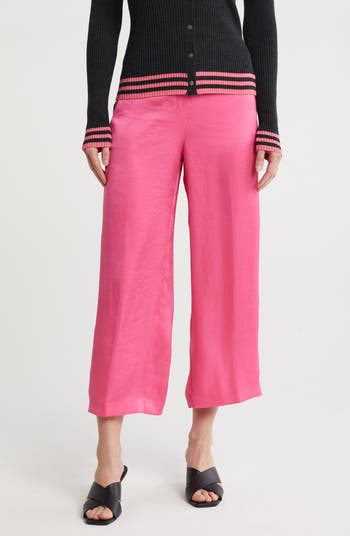 Made from crushed satin, these cropped wide-leg pants exude a luxe feel that offers versatile styling that can be dressed up or down.