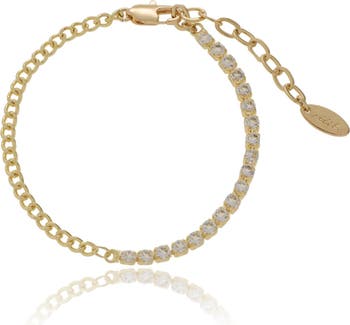 Prong-set white cubic zirconia stones compose of one half of this chain bracelet with curb links on the other side.