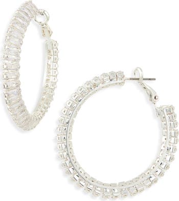 Sparkling white baguette-cut crystals outline the silhouette of these hoop earrings that'll add essential shine to daytime and evening looks.