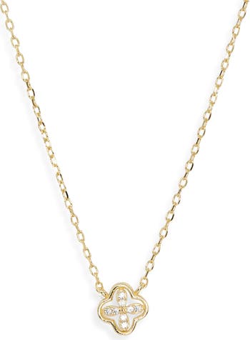 Radiant cubic zirconia illuminates this elegant open clover pendant that gracefully hangs from a polished chain with a gleaming finish plated over sterling silver.