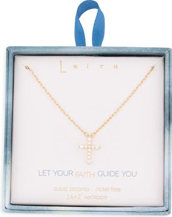 Let your faith shine with this delicate cross pendant necklace glittering with cubic zirconia.