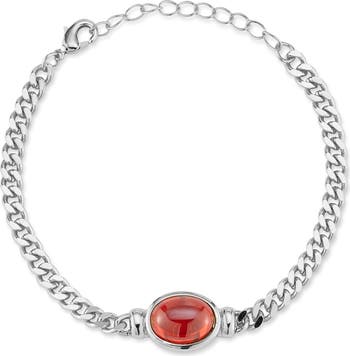 An oval cubic zirconia pendant lends a pop of color to this chunky curb-chain bracelet.