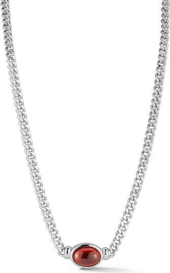 An oval cubic zirconia pendant lends a pop of color to this chunky curb-chain necklace.