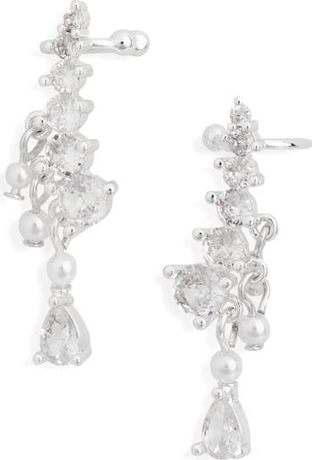 Cubic Zirconia & Faux Pearl Climber Stud Earrings