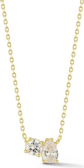 A duo of mixed-cut cubic zirconia shines from the front of this sterling silver necklace plated in 14-karat gold.