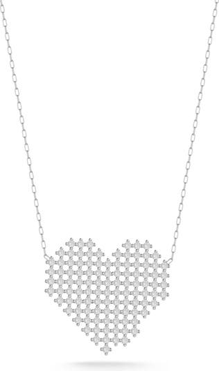 Bring sweet sparkle to your look with this latticed cubic zirconia heart pendant necklace crafted from sterling silver with a polished rhodium finish.