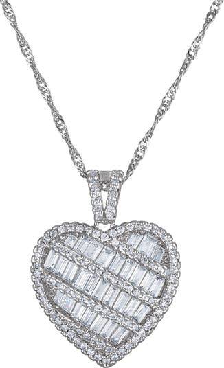 Sparkling round- and emerald-cut cubic zirconia fill and outline the heart pendant suspended from this twisted chain necklace.