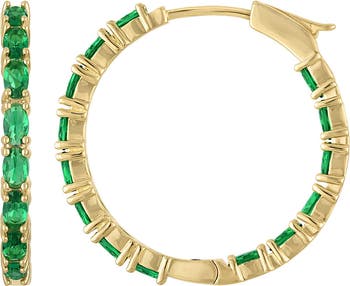 Add sparkle to your lobes with these hoop earrings sparkling with prong-set emerald-hued cubic zirconia.