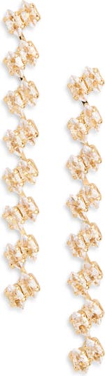 Marquise-cut cubic zirconia make a shimmering statement against these drop earrings done in 14-karat gold layer.
