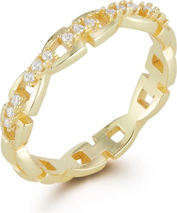 This sterling silver ring features a rigid chain glittering with cubic zirconia to catch light as you move.