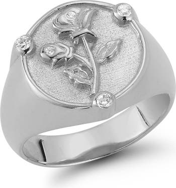 Cubic Zirconia Rose Signet Ring