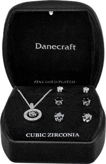 Mix up your look with this glamorous four-piece set including white and black cubic zirconia studs and a coordinating pendant necklace.