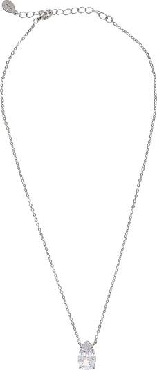 A four-prong pear-shaped cubic zirconia grounds this chain necklace plated in icy rhodium.