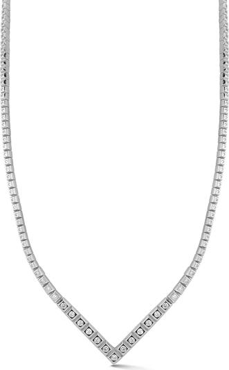 Sparkly cubic zirconia illuminate the square links of this V-shaped tennis necklace that brings instant shine to your looks.