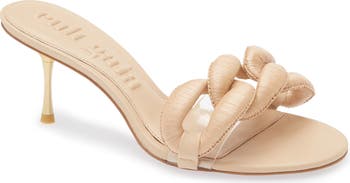 The modern look of chain links on a translucent strap take on a tropics-inspired form with this beachy raffia sandal that's set atop glam goldtone hardware. Puffy branding on the footbed adds stylish distinction wherever you go.