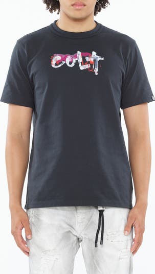 Broad brushstrokes color the signature logo that brands this T-shirt cut for a comfortable fit from soft, breathable cotton that feels cool all day.