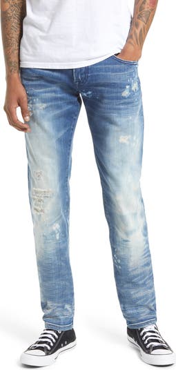 Pure cotton denim means a supreme fit in modern streetwear jeans with faded-in stacking, bleach stains and pre-fab holes.