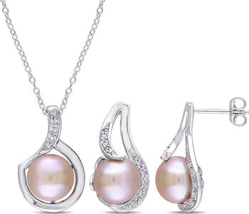 Achieve instant glam with this set that features a lustrous cultured-freshwater pearl necklace and matching stud earrings to complete the look.