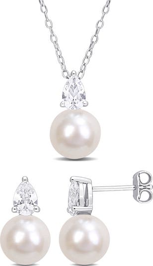 Achieve instant glam with this set that features a lustrous cultured-freshwater pearl necklace and matching stud earrings to complete the look.