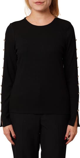Molten buttons highlight the slit long sleeves of this soft ribbed top that instantly elevates your everyday style.