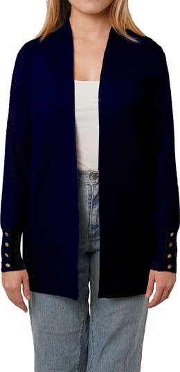Knit from soft yarn, this open-front cardigan with buttons along the sleeves layers on lightweight warmth with effortless style.