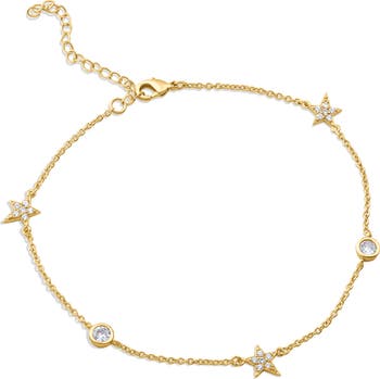 - - 14K gold plated pave set cubic zirconia star anklet - Lobster clasp closure - Approx. 9" + 2" extension - Imported Orders cannot be shipped to Canada, Puerto Rico, APO, FPO or P.O. Boxes.