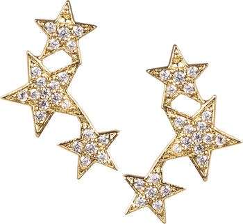 - - 14K gold plated star stud earrings - Post back - Approx. 1" L x 0.5" W - Imported