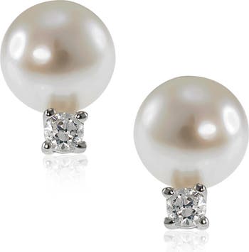 Hand polished freshwater pearls are accented by petite CZ stones for an added sparkle to these beaming stud earrings.
