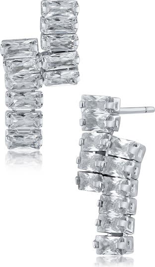 Baguette-cut cubic zirconia illuminate these stacked bar drop earrings that are perfect for a glamorous night-out look.