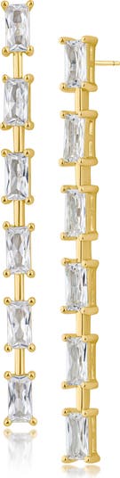 Baguette-cut cubic zirconia illuminate slender linear drop earrings that bring glamorous sparkle to any look.