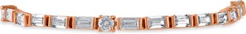 Baguette-cut and round cubic zirconia illuminate this glamorous tennis bracelet boasting a rosy finish.