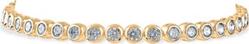 Bezel-set round cubic zirconia trace this glamorous tennis bracelet boasting a high-shine finish.