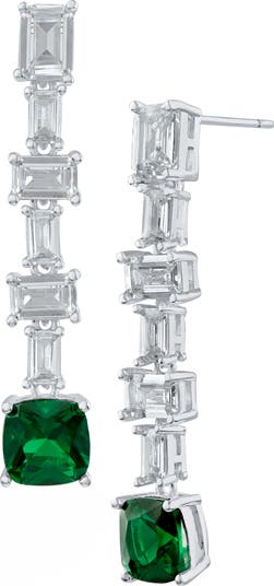 Glistening cubic zirconias stack up upon these silvertone plated drop earrings for a bold look.
