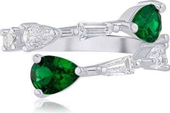 Pear-cut and baguette cubic zirconia bring captivating sparkle to an elegant bypass ring boasting a high-shine finish.
