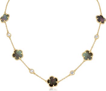 Enameled clovers and round-cut cubic zirconia stations amplify the shimmer and shine of a delicate chain that instantly brightens any neckline.