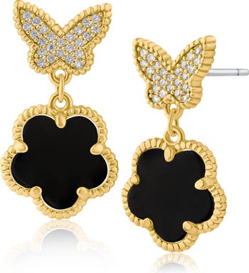 Add an elegant sparkle to your look with these clover drop earrings adorned with butterflies luminous with a cubic zirconia pavé.