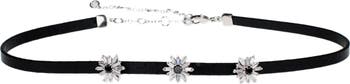 Anchored by a sleek faux leather band, a starburst trio aglitter with pavé stones adds a touch of glamour to this trend-right choker.